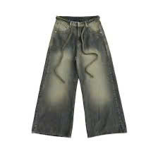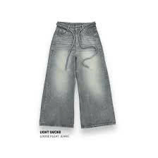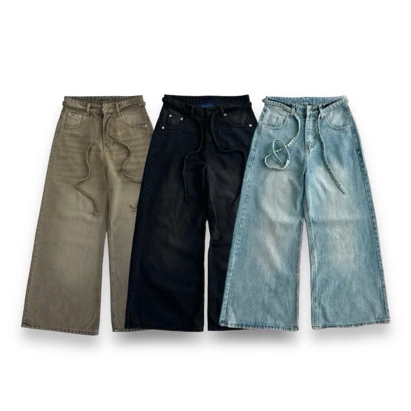 Quần jean ống rộng phối dây